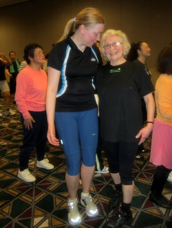 Trenere bija kolosāla, prata nezaudēt žilbinošo smaidu un tikt galā ar milzīgo nejēgu baru (mani tai skaitā, protams, jo – kas ir zumba internetā izlasījām viesnīcā iepriekšējā vakarā). Nevarēju nenobildēties ar vienu no cienījama vecuma sparīgajām zumbotājām – kundze bija no Zviedrijas. Vecums nav šķērslis nekam!