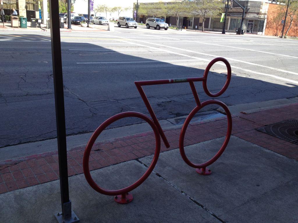 Ielu malās bija stilīgas mini velonovietnes (pielieku bildi). Kaut arī plašumi milzīgi un man jau šķiet, ka vai pusi no ASV teritorijas aizņem auto stāvlaukumi, bezmaksas tie ir tikai pie lielveikaliem. Pilsētā gandrīz visas stāvvietas ir maksas. Tā gan nav augsta, piemēram, 3-5 dolāri par visu dienu man nešķita īpaši daudz. Ielas malu stāvvietu automātus darbina saules baterijas.